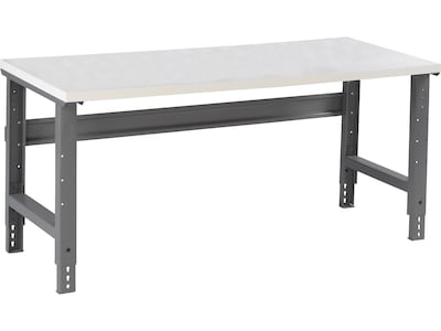 - Features high-pressure white plastic laminate top and edges with particleboard core; non-conductive smooth surface is perfect for electronics assembly; solid steel base comes in medium gray