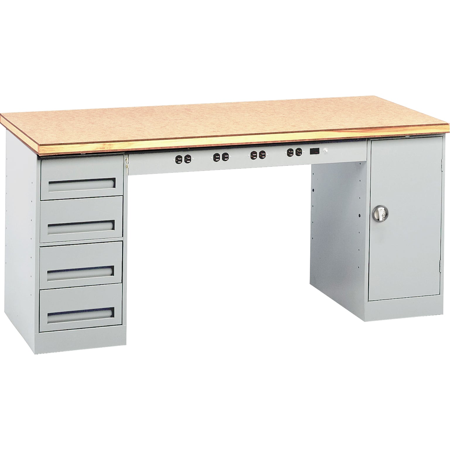 Tennsco workbenches with 24" deep modular pedestals come in either cabinet or drawer style. They can be used separately or to support one of the Tennsco standard tops. This 72" wide electronic workbench includes solid work surface, which is made of compressed wood and features 1500 lbs. of weight capacity, one four-drawer pedestal, and one cabinet unit, both are made of heavy gauge welded steel. Modular units come with key locks and recessed handles. Moreover, Tennsco warrants goods for a 1-year period from the date of shipment.