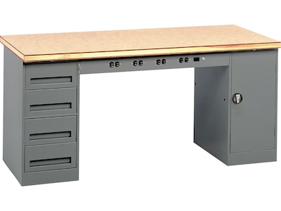 Tennsco workbenches with 24" deep modular pedestals come in either cabinet or drawer style. They can be used separately or to support one of the Tennsco standard tops. This 72" wide electronic workbench includes solid work surface, which is made of compressed wood and features 1500 lbs. of weight capacity, one four-drawer pedestal, and one cabinet unit, both are made of heavy-gauge welded steel. Modular units come with key locks and recessed handles. Moreover, Tennsco warrants goods for a 1-year period from the date of shipment.