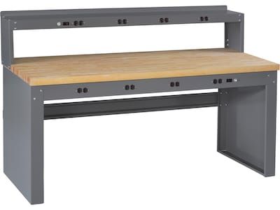 This Tennsco electronic workbench is designed for electronic assembly, testing, product development, and other uses where access to multiple power outlets is important. Workbench legs and frames are box-formed for strength and rigidity. Frame front panel has knockouts for four duplex receptacles as well as a switch and circuit breakers (order optional wiring kit separately). Removable cover behind receptacle panel facilitates wiring and prevents contact with rear terminals.
