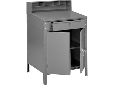 Closed-style Tennsco foreman`s desk provides a convenient yet sturdy writing surface with the added capability of storing a variety of supplies in a lockable cabinet. Ideal for the industrial workplace, businesses, schools, and institutions.