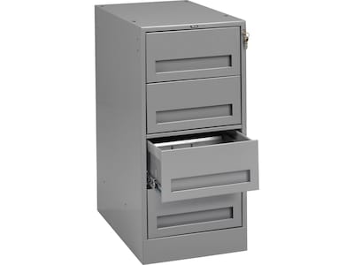 This 32" high modular four-drawer cabinet is designed to move heavy parts and tools to your worksite. Features all-welded construction from heavy-gauge steel and comes in medium gray color. Contains four box drawers with card holder each. Comes with recessed handle and ball bearing suspensions for smooth operation.