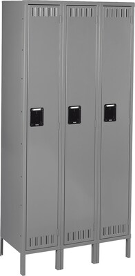 Tennsco Single Tier Locker with Legs, 3 Units, 3 Lockers, Medium Grey, 78"H x 45"W x 15"D (TNNSTS1515723MG)