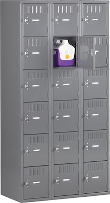 Tennsco Six Tier Box Locker without Legs, 3 Units, 18 Lockers, Medium Grey, 72"H x 36"W x 12"D (TNNBS6121212CMG)