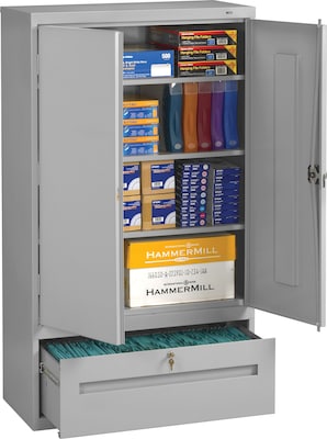 Tennsco Storage Cabinet with Lateral Drawer, 4-Shelf, 1-Drawer, Light Grey, 66"H x 36"W x 18"D