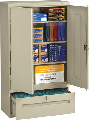 Tennsco Storage Cabinet with Lateral Drawer, 4-Shelf, 1-Drawer, Putty, 66"H x 36"W x 18"D