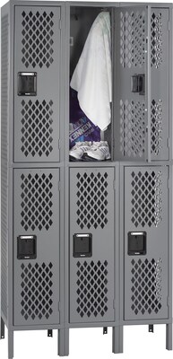 Tennsco Ventilated Double Tier Box Locker with Legs, 3 Unit, 6 Lockers, Medium Grey, 78"H x 36"W x 18"D (TNNVDL1218363MG)