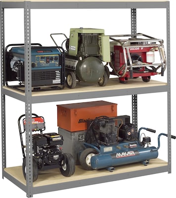 - Includes three 24"D industrial steel shelves with 1,750 lb., capacity per shelf evenly distributed