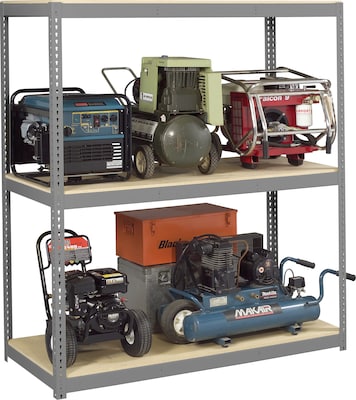 - Includes three 48"D industrial steel shelves with 2,000 lb., capacity per shelf evenly distributed