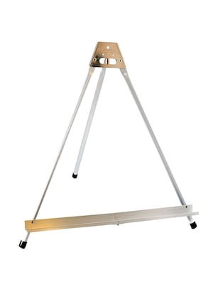 Quality, heavy gauge aluminum tubular tripod easel. Extends to 15 in. Legs have no-mar rubber tips. Folds easily and will support stretched canvas up to 15 in. high or boards up to 20 in. x 24 in. No assembly required. Easel size is 19 1/2 in. high x 16 in. wide.
