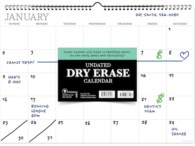 The TF Publishing monthly calendar will last forever, enjoy 12 perpetual 12" x 17" dry-erase months, perfectly sized for your fridge or home command center.