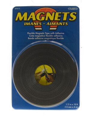 Flexible Magnetic Tape, with adhesive on one side and a magnetic strip on the other, is perfect for making lightweight craft projects magnetic.Long and short rolls are available. Just cut to length, peel off adhesive liner, and apply. Great for office, school, or home use.