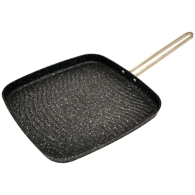 THE ROCK by Starfrit 10 in. Grill Pan with Bakelite Handles features an extra-thick, forged aluminum base to provide optimal heat distribution for even cooking and features a durable rock-like finish that lasts t3 times longer than traditional nonstick cookware. With its ergonomic Bakelite handle, it is the perfect cookware piece for indoor grilling. Get the ROCK today and enjoy a better cooking experience.