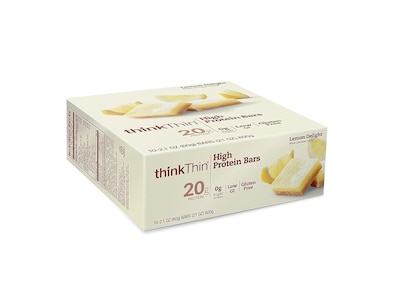 Help obtain your daily protein intake easily with this 10-count pack of thinkThin 2.1-ounce high-protein lemon-delight bars.
