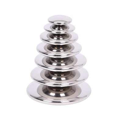 The Sensory Reflective Silver Buttons are a fascinating sensory play resource for ages 0m+. They are robustly constructed out of stainless steel with seamless joins, which naturally make them anti-bacterial and very easy to clean. The 7 giant silver buttons are graduated in size and have a rounded discus shape. The range in size from 2" to 5.5".