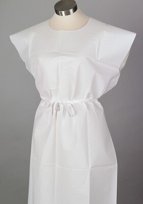 - Disposable adult gown offers comfort and modesty
