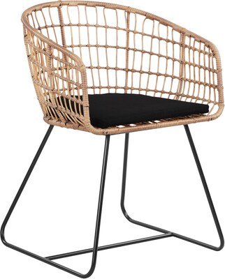 Wicker is a mainstay in casual furniture, and for good reason… and this lounge chair shows just how inviting it can be. This curved chair is constructed of light-colored poly rattan that contrasts beautifully with the black fabric and metal base. Designed for comfort as much as style, this chair's removable cushion adds a perfect amount of padding, while the arms stand at a relaxing height. Try one of these chairs as a cool accent in your living room, or consider a pair to use at each head of your dining room table.