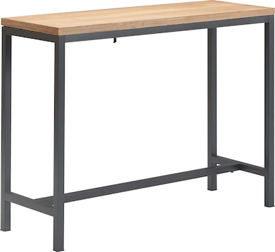 Add storage and display space to your entry hall, kitchen, or living room with this modern console table. The minimalist table features a narrow, industrial-inspired design that's great for both houses and smaller spaces like condos and apartments. It's made with a sturdy metal frame for impressive durability. A wood veneer tabletop that features a natural finish with visible wood grain adds a little rustic flair to the design. Pair it with the matching coffee table to bring an effortlessly coordinated look to your home furniture.