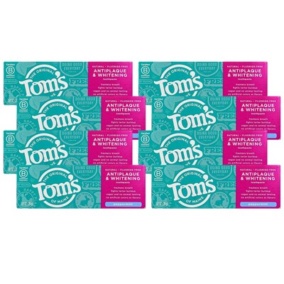 Tom's of Maine Antiplaque and Whitening Fluoride-Free Toothpaste, 1 oz Travel Size Tube, 8 Tubes/Bag, 6 Bags/Carton