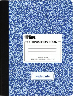 TOPS 1-Subject Composition Notebooks, 7.5" x 9.75", Wide Ruled, 100 Sheets, Color chosen at random (63794)