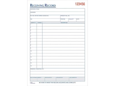Keep track of received deliveries with this TOPS three-part receiving record book.