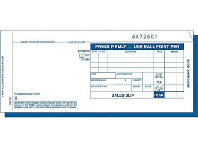 - Triplicate Credit Card Sales Slips are made with carbonless paper to protect your customers; no carbon tissues containing credit card information to worry about