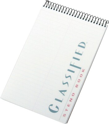 The classic flip-top format long preferred by stenographers and reporters gives quick access to notes and lists. The classic 6" x 9" size tucks easily into any backpack or bag. A no-snag coil resists catching on papers or clothing. Perforated sheets detach easily. Clear poly cover. Gregg ruled, 100 sheets.
