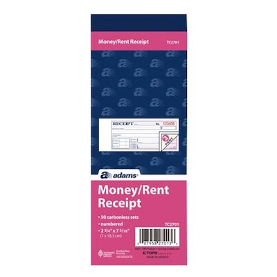 The TOPS™ TC2701-3 3-part money/rent receipt book with consecutive numbering, is perfect for rent or any other type of payment.