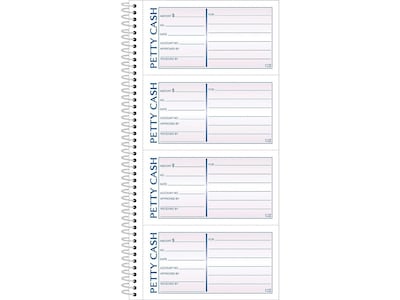 Maintain detailed accounts with this handy book designed to record the details of cash payouts. Each of the 200 receipt sets in this book produces a canary yellow duplicate underneath the white original, creating a copy for the recipient and one to retain for office records. This spiral-bound TOPS petty cash receipt book has four 2.75 x 5-inch slips on each page.