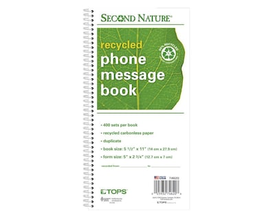 TOPS® Phone Message Book, Ruled, 2-Part, 11" x 5 1/2" White/White, (74620)