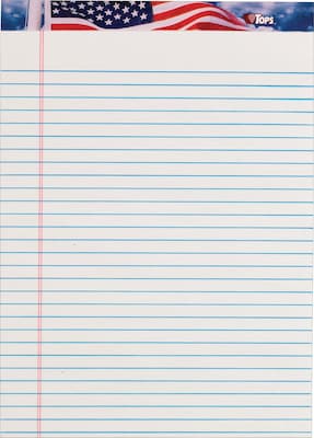 U.S. flag headtape. Letr-Trim® perforated. Paper made from recycled fiber content. White paper. Legal/Wide rule. 8-1/2" x 11-3/4". 50 sheets. 12 pads per pack.