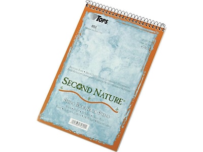 TOPS Second Nature Steno Pad, 6" x 9", Gregg Ruled, White, 70 Sheets/Pad (TOP 74690)