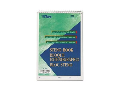 Keep track of important notes and reminders with this gregg-ruled steno notebook. Featuring a no-snag coil, this notebook resists catching on papers, clothing, and other items. The perforated edge of each sheet lets you easily detach it without causing other rips. With 60 sheets, this TOPS green-tint steno notebook provides plenty of space for extensive writing tasks, while the cover keeps pages clean and undamaged.