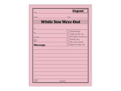 Ensure accurate note-taking when fielding calls with these TOPS pink While You Were Out pads.