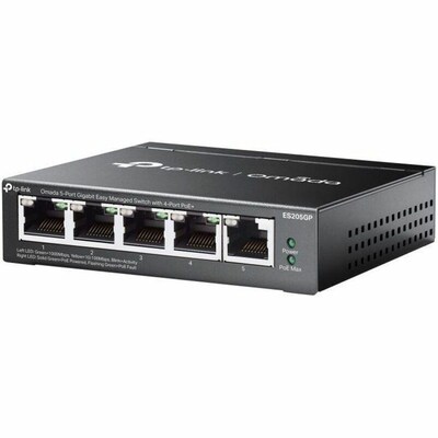 TP-Link Omada 5-Port Gigabit Ethernet PoE Managed Switch, 1 Gbps, Black (ES205GP)