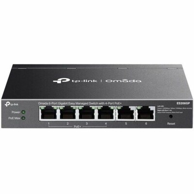 TP-Link Omada 6-Port Gigabit Easy Managed Switch with 4-Port PoE+, Black (ES206GP)