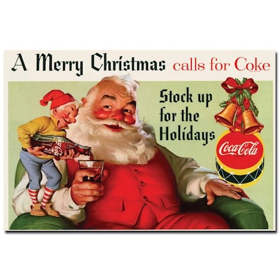 Trademark Fine Art 'Coke Santa Merry Christmas w/ Elves' Canvas Art