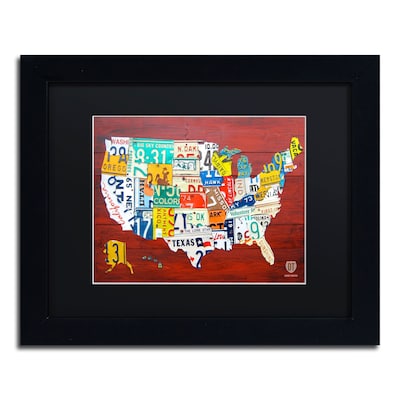 Trademark Fine Art ''License Plate Map USA'' by Design Turnpike 11" x 14" Black Matted Black Frame (886511905528)