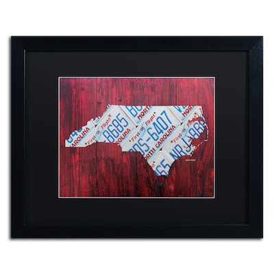 Trademark Fine Art ''North Carolina License Plate Map'' by Design Turnpike 16" x 20" Black Matted Black Frame (886511911680)