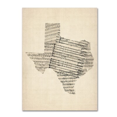 Trademark Fine Art Old Sheet Music Map of Texas by Michael Tompsett 18 x 24 Canvas Art (MT0528-C1824GG)