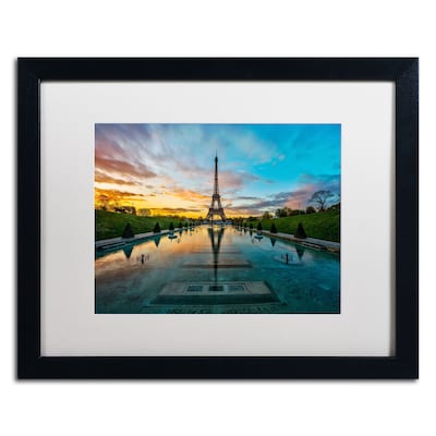 Enliven your space by decorating it with this creative "Trademark Fine Art RV0022-B1620MF "Sunrise in Paris" by Mathieu Rivrin 16" x 20" Framed Art, White Matted". The sublime imagery and subtle lighting of this print lends character and sophistication to your space. The skillful finesse of Mathieu Rivrin in this artistic work can enhance the style quotient of your room. If you want to add a personal touch to your home or office decor, this artwork is an excellent choice. Use this contemporary wall ar t to uplift any space and to add a personalized element. Made from canvas, it is a durable choice for modern-day homes and offices. Ideally sized, this accent measures 16"H x 20"W so it's easy for you to place it in your dining room, living room, offi ce space or gallery. Uplift your room by adding this gorgeous wall art to your home or office.