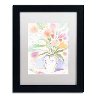 Trademark Fine Art ''The Vase of Tulips'' by Sheila Golden 11" x 14" White Matted Black Frame (SG5739-B1114MF)