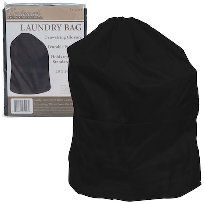 Trademark Heavy-duty jumbo sized laundry bag in black color measuring 1/4" x 28" x 38" is made of nylon for enhanced durability and is machine washable. Bag helps to protect your clothes from the elements and easily transport your laundry.
