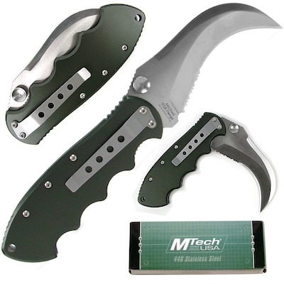 Whetstone™ Hawk bill blade stainless steel folder knife features aluminum handle for comfortable grip and measuring 8 3/4" comes in liner lock blade locking design.