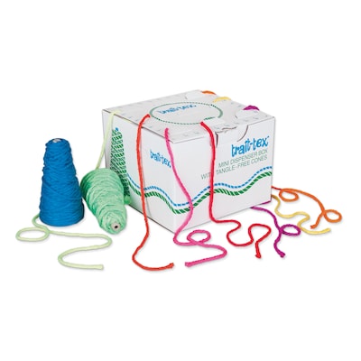 Not only is our Trait-Tex® Neon Yarn bright, but it also glows under black light! 4-ply Jumbo Weight Neon Yarn in our sturdy, tangle-free dispenser. One cone each of nine Neon colors. Each 2 ounce cone is approximately 60 feet. Dispenser is especially appropriate for use in small classrooms or day care facilities. Nine cones include: Yellow, Pink, Red, Orange, Chartreuse, Green, Blue, Violet and Strawberry. Way to glow!