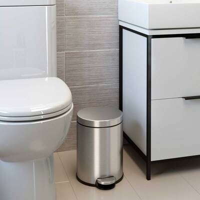STAINLESS-STEEL ACCENTS: Charcoal stainless-steel rim and pedal upgrade the aesthetics of the container to complement your space