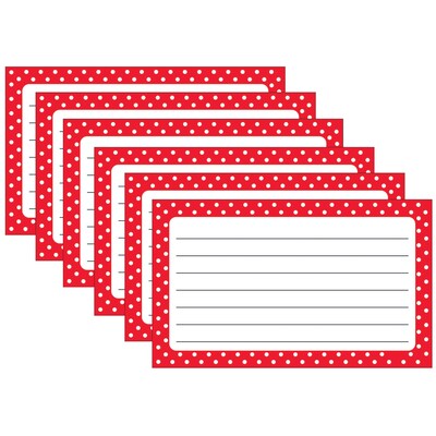 TREND 3" x 5" Index Cards, Ruled, Red Polka Dots, 75/Pack, 6 Packs/Bundle (T-75302-6)