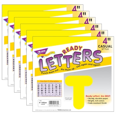 TREND 4" Casual Uppercase Ready Letters, Yellow, 71/Pack, 6 Packs (T-464-6)