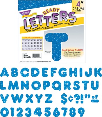 4" blue sparkle uppercase read letter are great for use on bulletin boards, signs, news boards, showcases, student work displays, alphabet learning activities, banners, labels, and more.