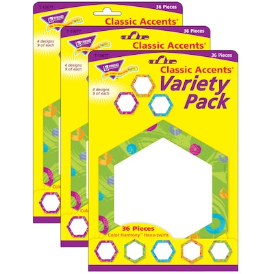TREND Color Harmony™ Hexa-swirls Classic Accents Variety Pack, 36 Per Pack, 3 Packs (T-10677-3)
